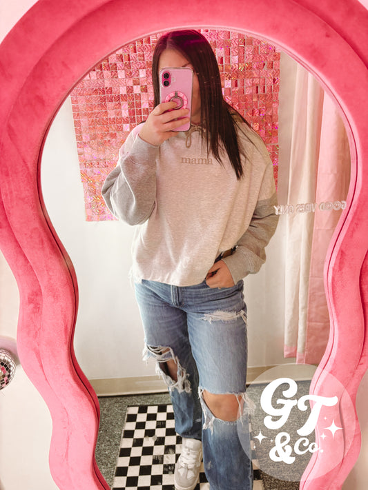 Mama Embroidered Cropped Hoodie