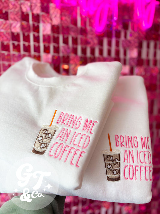 Bring Me An Iced Coffee Embroidered Crewneck *MADE TO ORDER 10-15 BIZ DAYS*