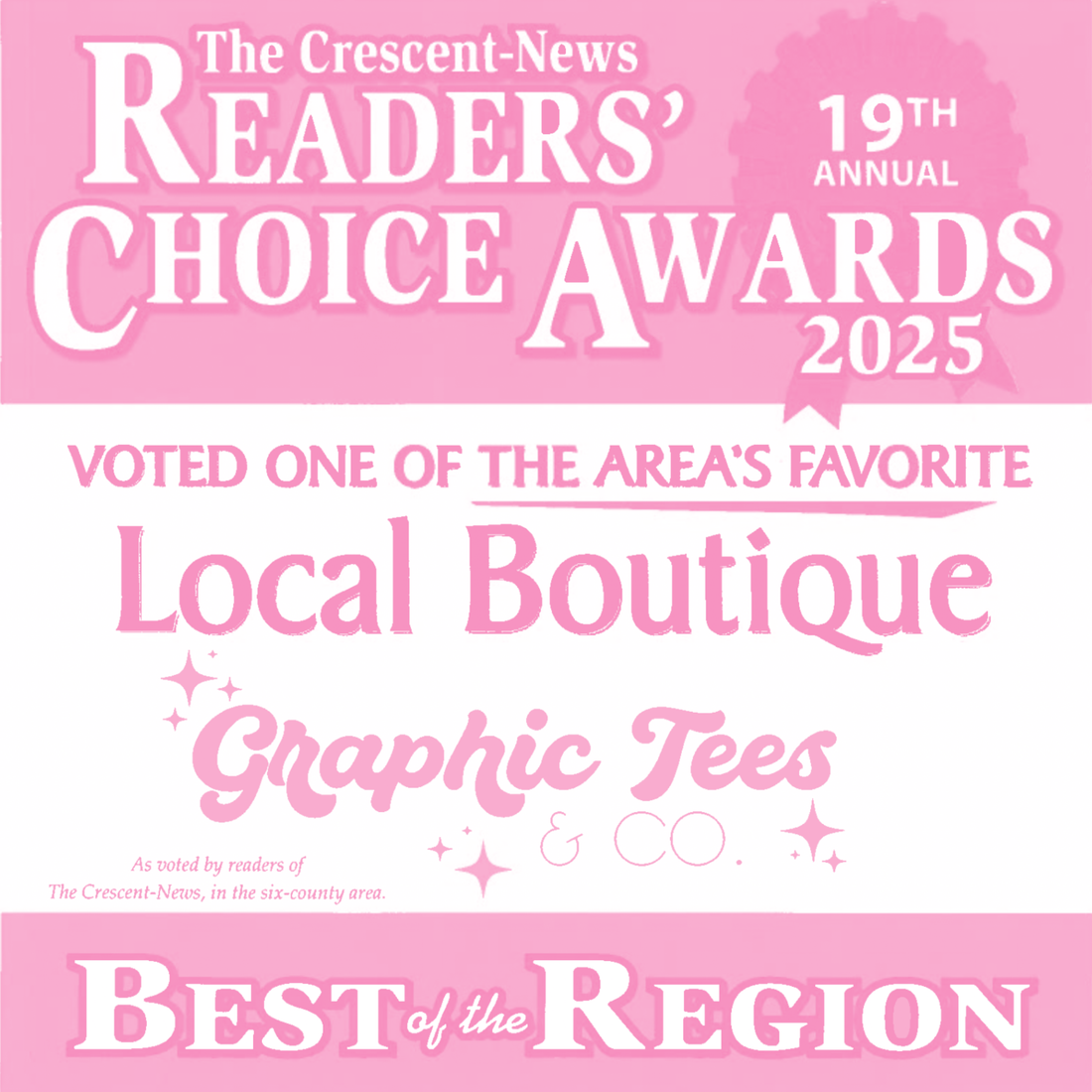 We’re incredibly honored to be voted 2nd Best Local Boutique in the Region in The Crescent-News Readers’ Choice Awards.