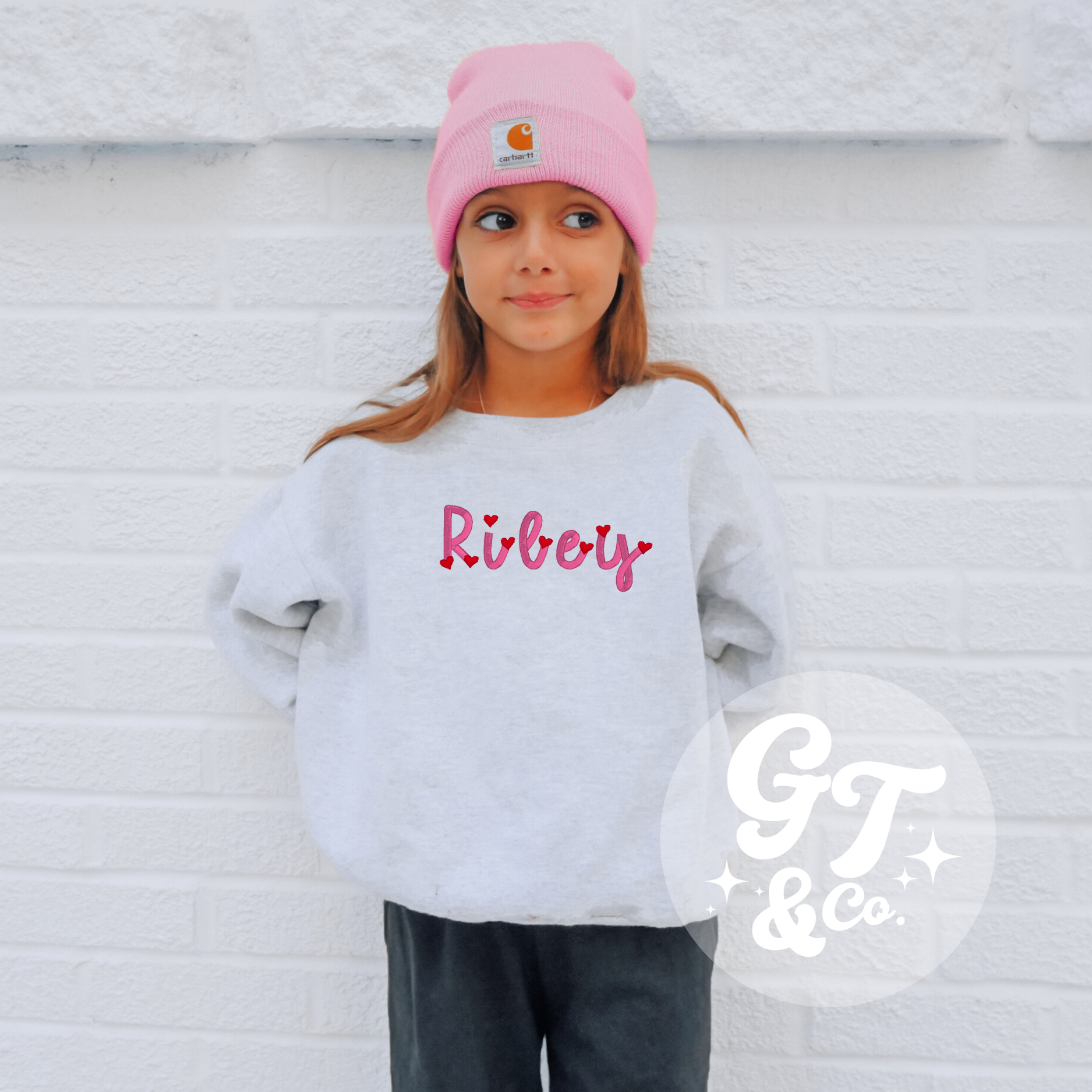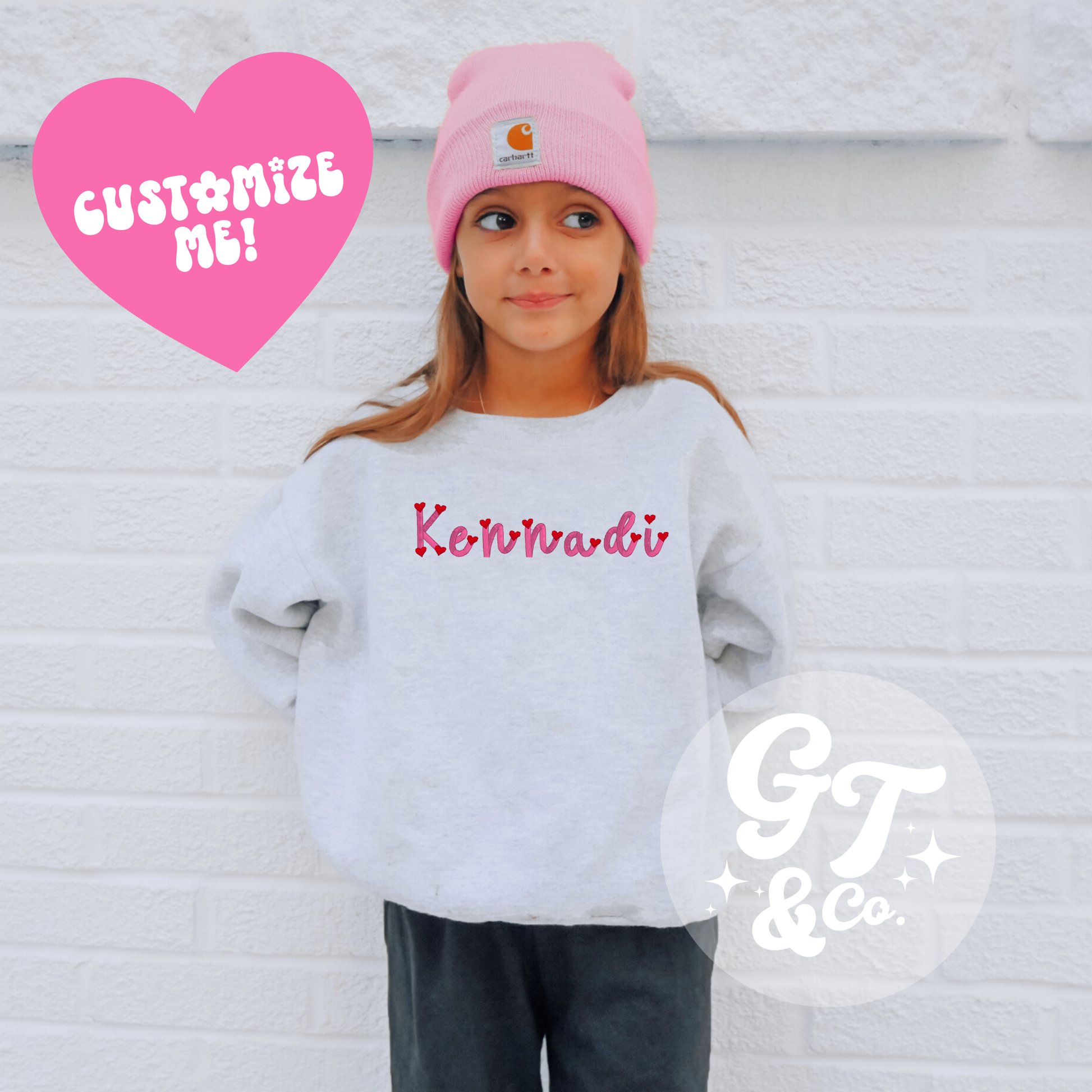 Custom Valentine Name Crewneck Spread the love this season with a personalized crewneck that puts your special someone's name front and center. Perfect for couples who want to match, best friends declaring their bond, or anyone celebrating the people they adore. Soft, cozy, and totally customizable—because generic gifts are so last year. Whether you're planning ahead or last-minute shopping, this crewneck turns a simple wardrobe staple into a heartfelt statement piece that'll make them smile every time they wear it.