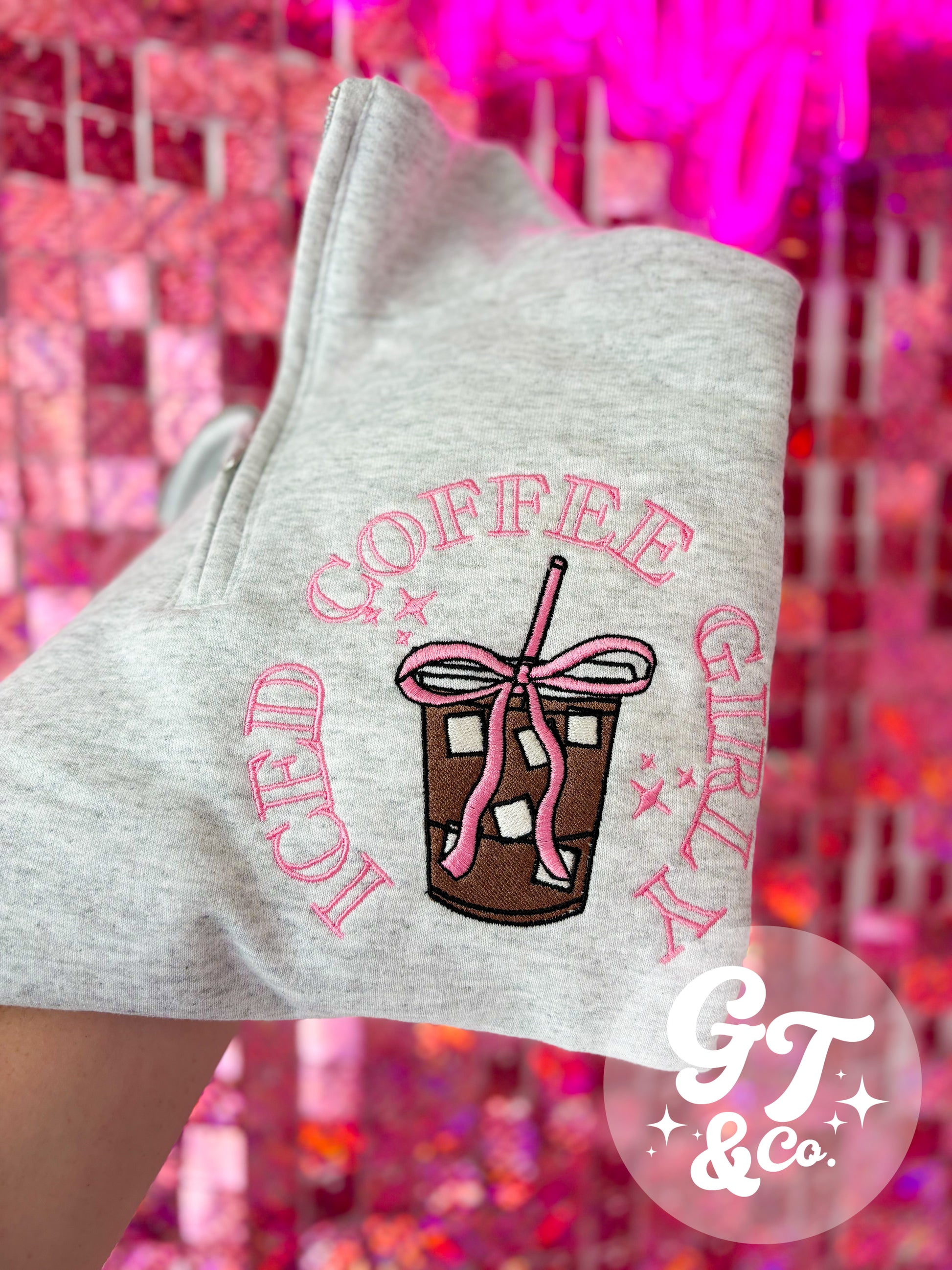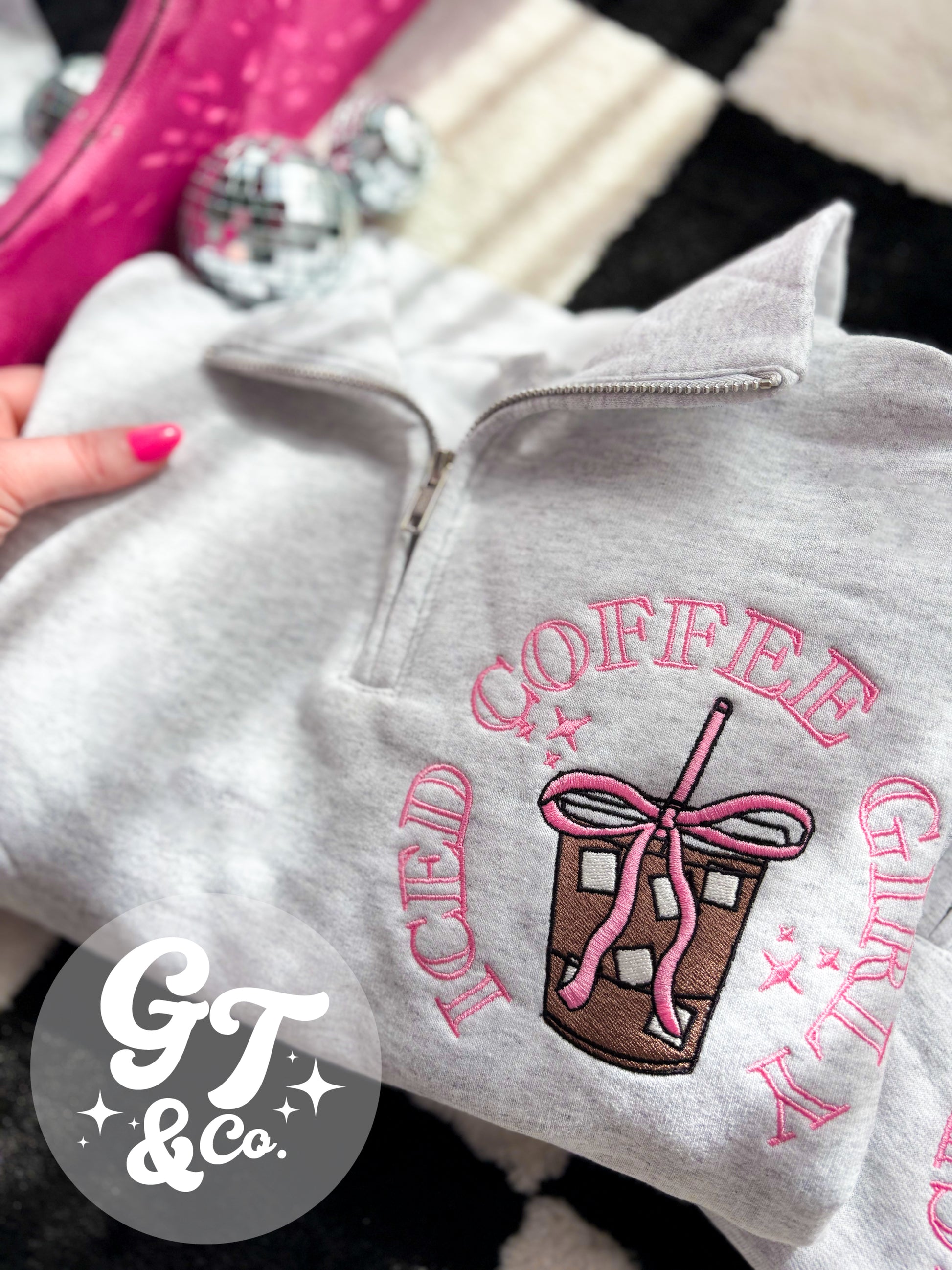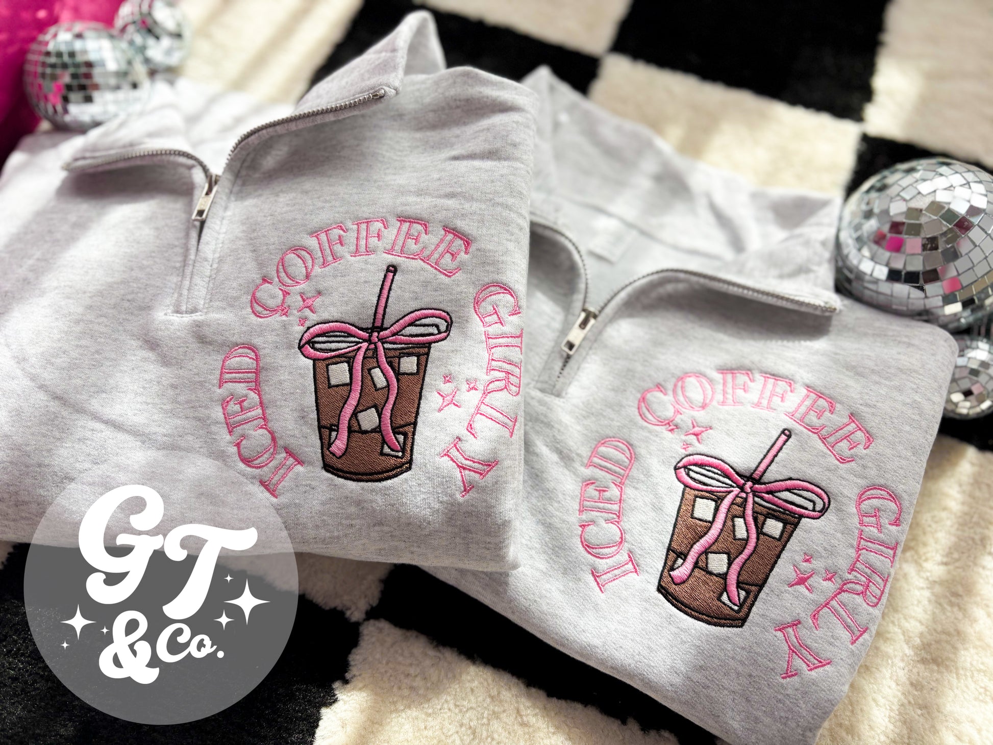 Iced Coffee Girly Embroidered Quarter Zip *MADE TO ORDER 10-15 BIZ DAYS*