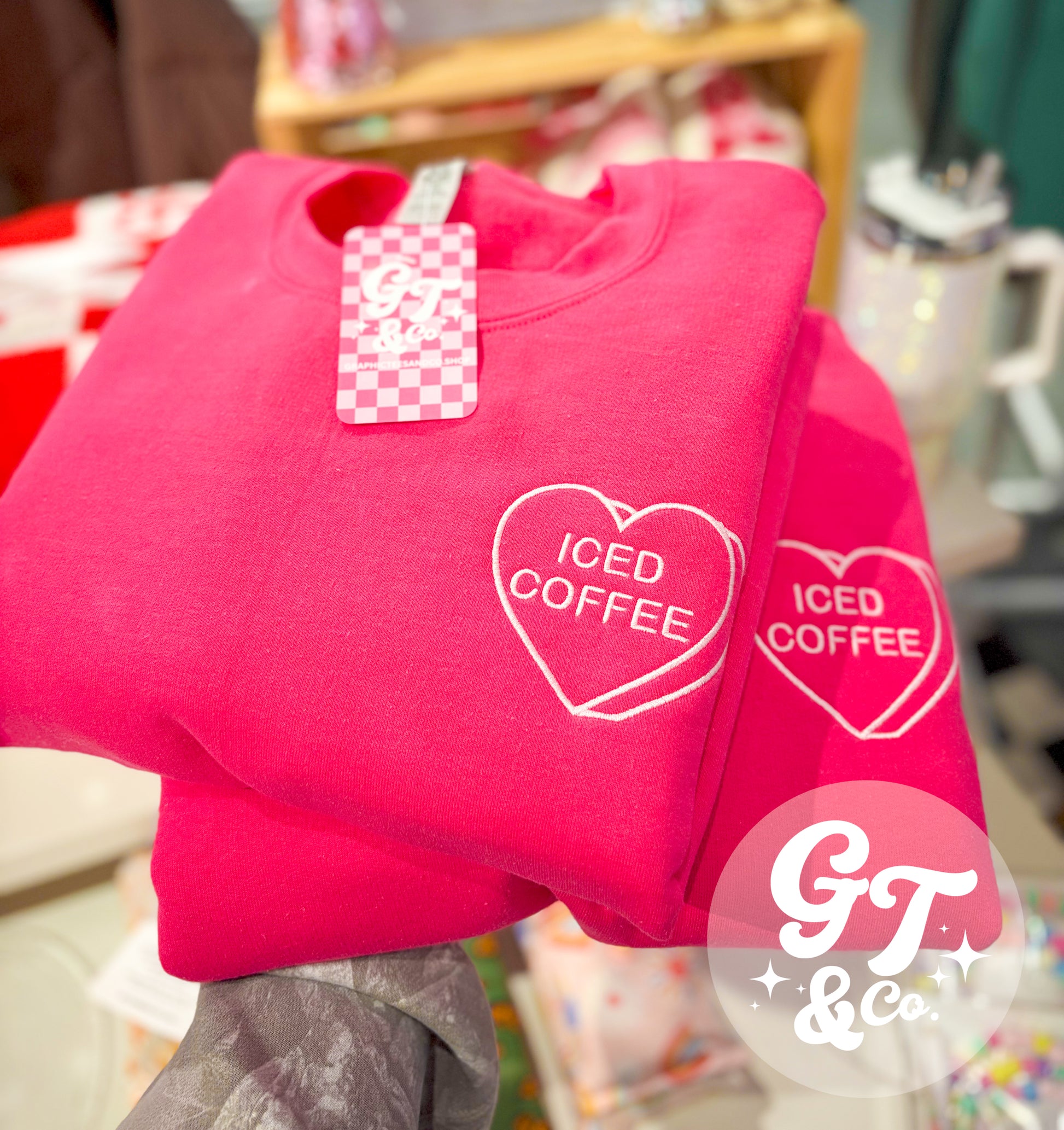 Iced Coffee Heart Embroidered Crewneck *MADE TO ORDER 10-15 BIZ DAYS*