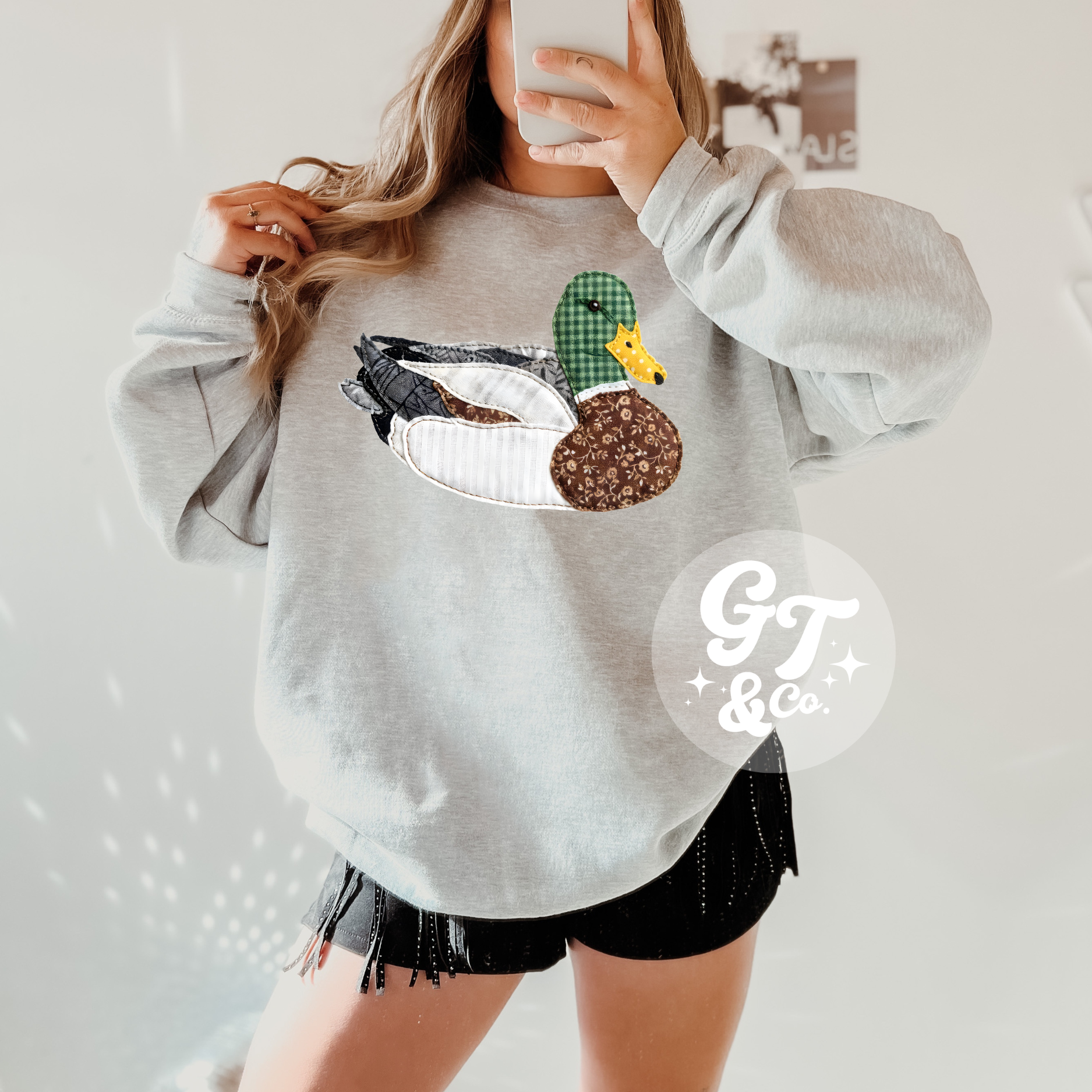Quack up your wardrobe with this whimsical tee featuring a charming mallard duck design rendered in a faux patchwork style. Perfect for nature lovers and waterfowl enthusiasts who appreciate a little quirky humor in their everyday wear. The playful artwork brings a splash of personality to any casual outfit, whether you're heading to the lake or just want to spread some feathered fun. Soft, comfortable, and ready to make a statement—this graphic tee is your new go-to conversation starter.