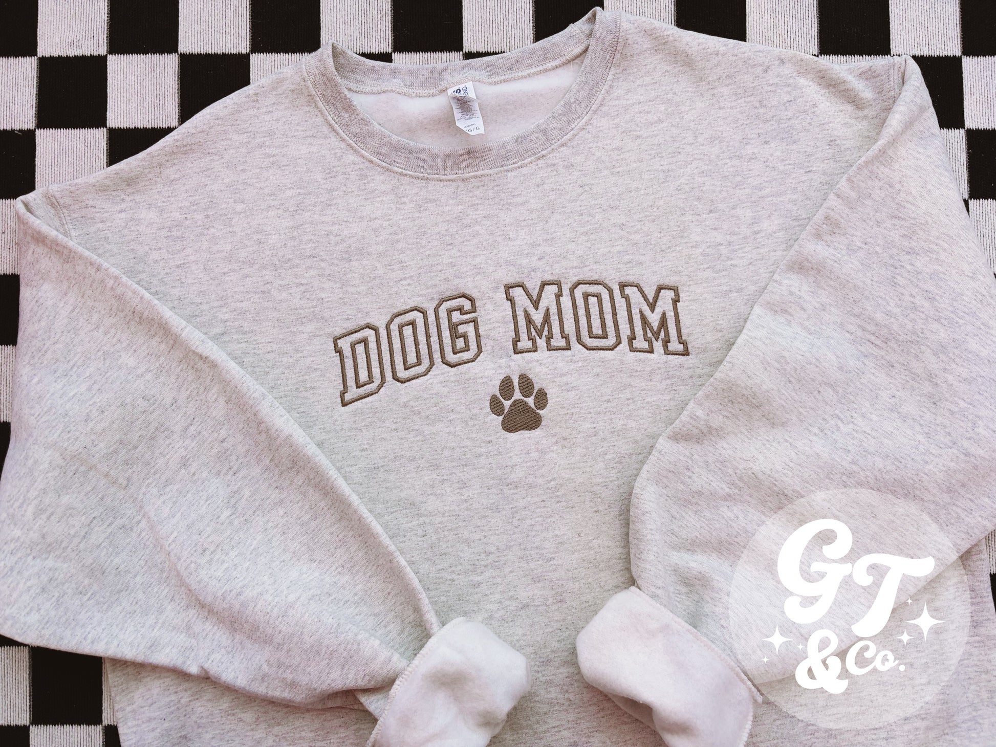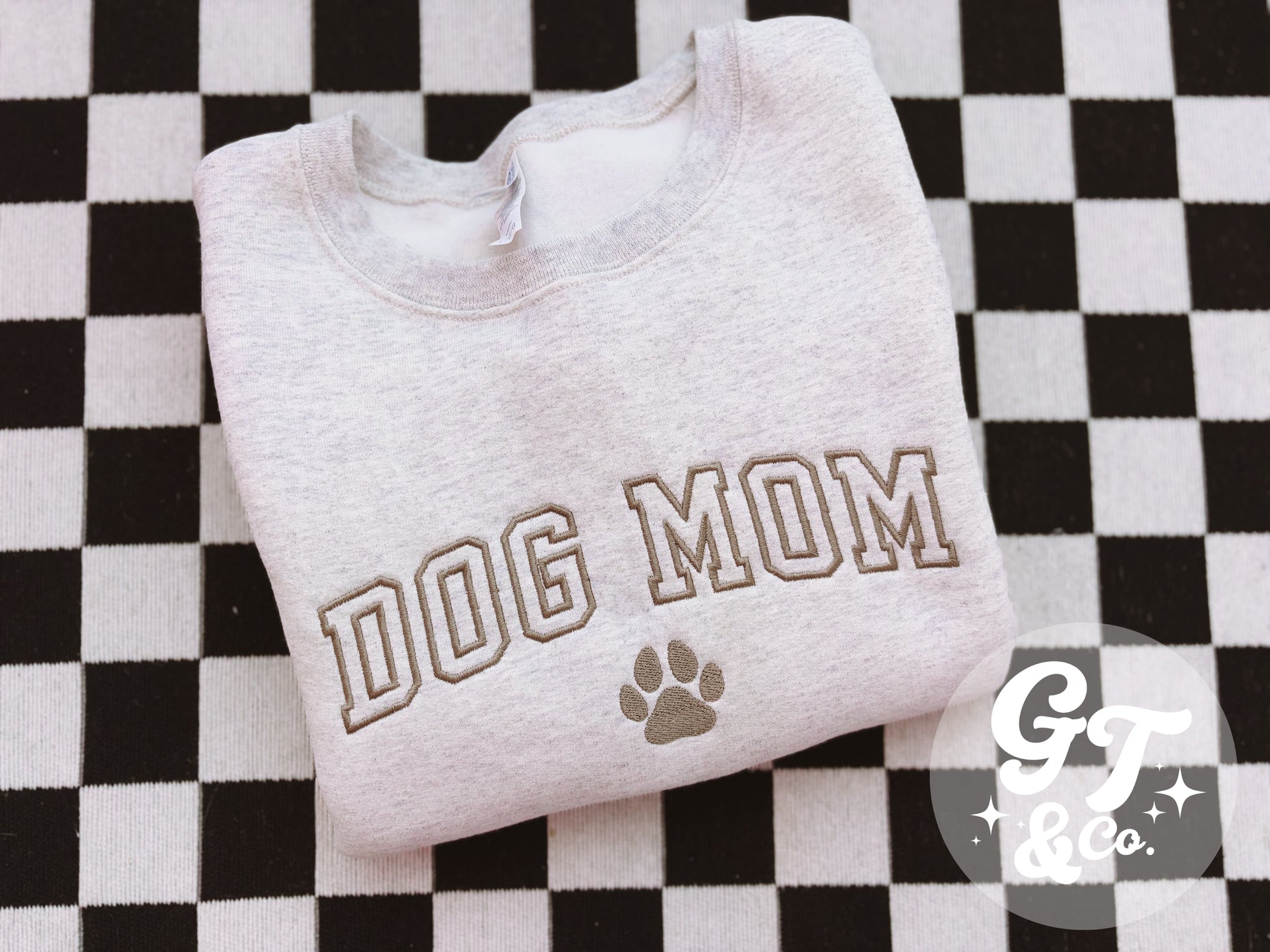 Varsity Dog Mom Embroidered Crewneck *MADE TO ORDER 10-15 BIZ DAYS*